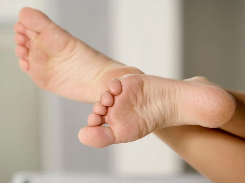 Revisión diaria de los pies, incluso entre los dedos y en la planta, para detectar lesiones pequeñas, cambios de color o temperatura, uso de calcetines sin costuras y de colores claros.